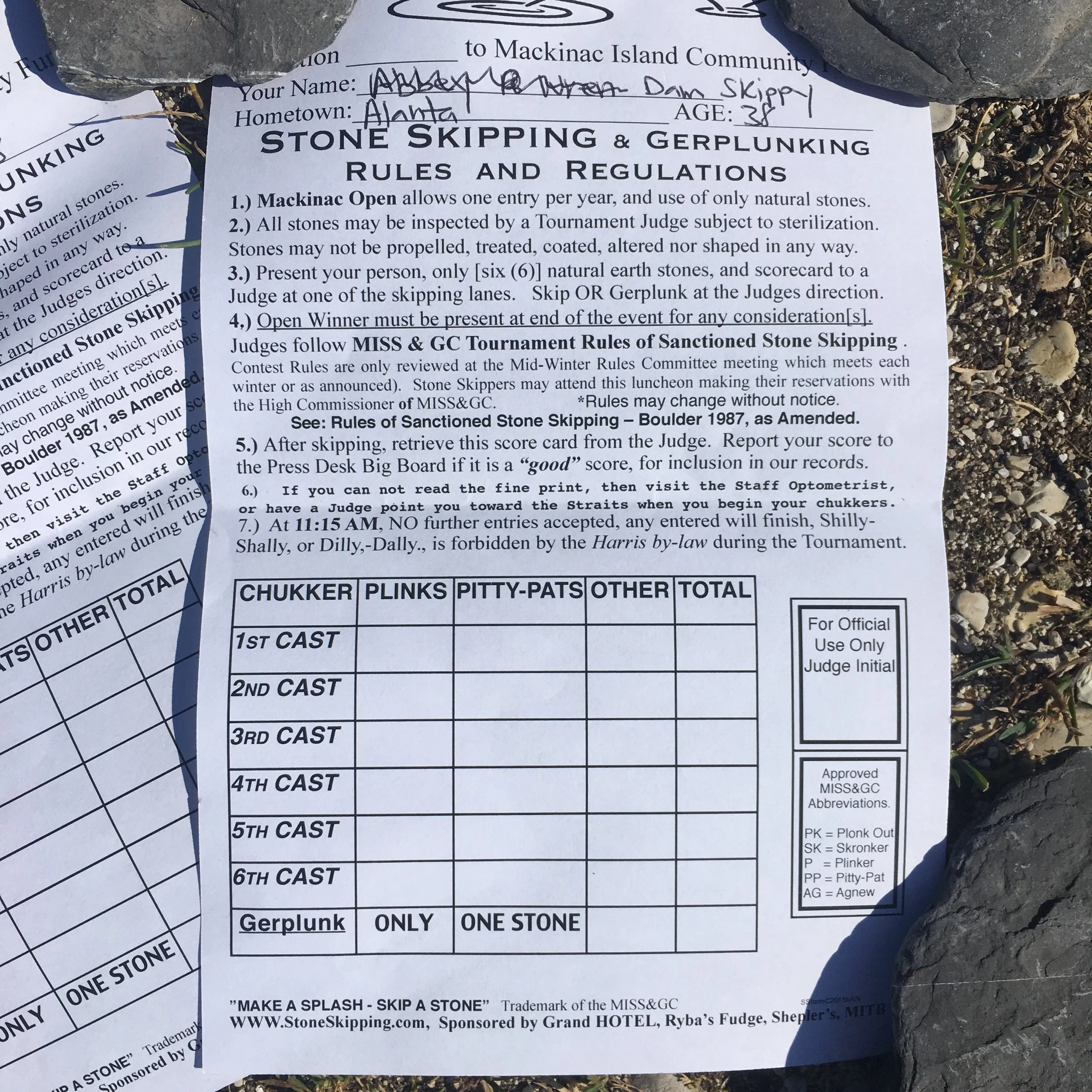 A funny thing happened on the way to the 51st annual Mackinac Island Stone Skipping and Gerplunking Championship (MISS&GC) at Mackinac Island,on the Upper Peninsula of Michigan. Just kidding, I just drove a long, long way.